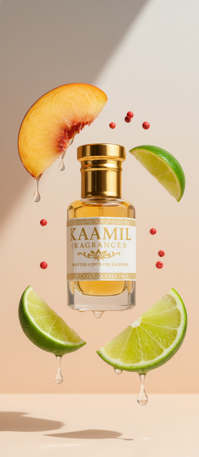 A bold and confident attar with citrus freshness, fruity vibrance, and smooth musky depth. 100% alcohol-free, long-lasting, and crafted for legends.