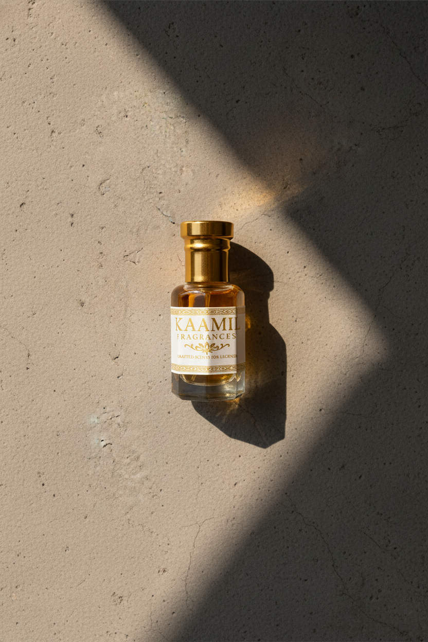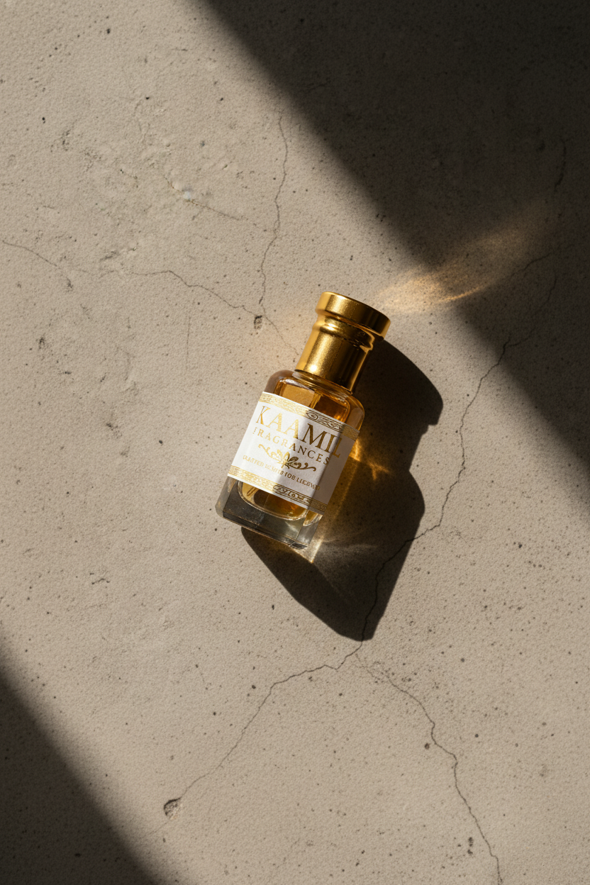 A modern masculine attar with citrus, florals, and warm amber. Alcohol-free, long-lasting, and crafted for legends.